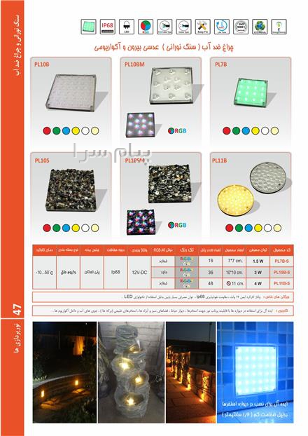 توان مصرفی این سنگ نورانی مربع ضد آب 3وات می باشد.