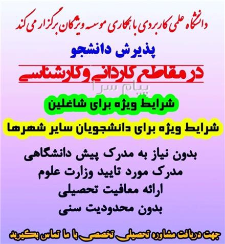 تحصیل آسان در دانشگاه در مقاطع کاردانی و کارشناسی ناپیوسته با ۱۰۰ درصد قبولی و بدون حضور در کلاس ها ویژه شاغلین.