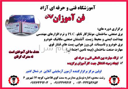 مجتمع آموزشی فن آموزان گیلان تنها هلدینگ آموزشی در شهر زیبای رشت با اخذ مجوز از سازمان فنی و حرفه ای توانسته در سال 98، تعداد زیادی از کارآموزانی که دوره های فنی خود را با نمره عالی و اخذ مهارت فنی و حرفه ای گذرانده بودند، به بازار کار معرفی نماید.