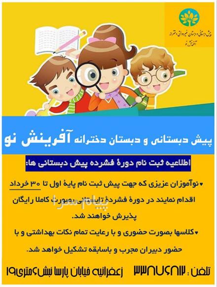 نوآموزان عزیزی که جهت پیش ثبت نام پایه اول تا30خرداداقدام نمایند.دردوره فشرده تابستانی بصورت کاملارایگان پذیرش خواهندشد.